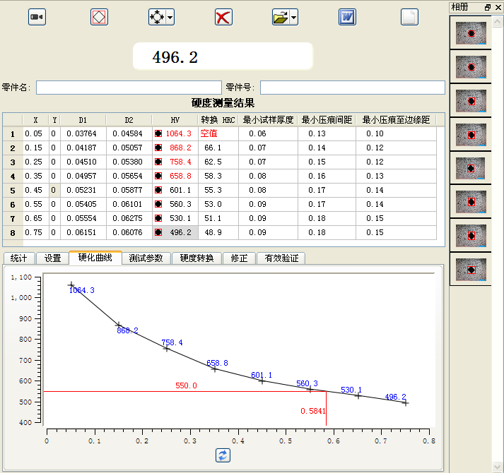 11、測(cè)量完畢后自動(dòng)生成硬度梯度曲線圖。