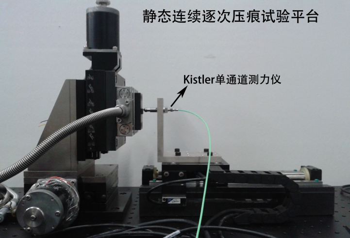 靜態(tài)連續(xù)逐次壓痕試驗(yàn)平臺(tái),試驗(yàn)平臺(tái)包括:直線電機(jī)、Kistler 9203單通道測(cè)力儀等設(shè)備。其驅(qū)動(dòng)通過(guò)Renishaw光柵尺閉環(huán)系統(tǒng)控制,重復(fù)定位精度達(dá)0.5μm,其Kistler單通道測(cè)力系統(tǒng)采樣頻率達(dá)27kHz。試驗(yàn)平臺(tái)可針對(duì)材料進(jìn)行逐次連續(xù)的壓痕試驗(yàn),從而研究其靜態(tài)力學(xué)性能。
